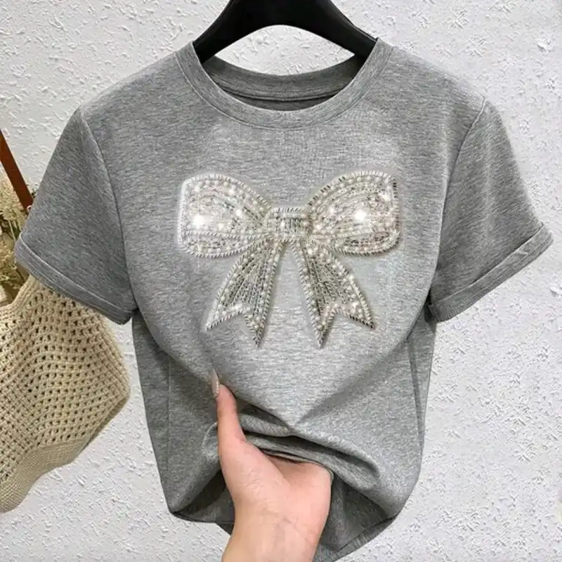 🩶 Camiseta con decoración de laso — Gris