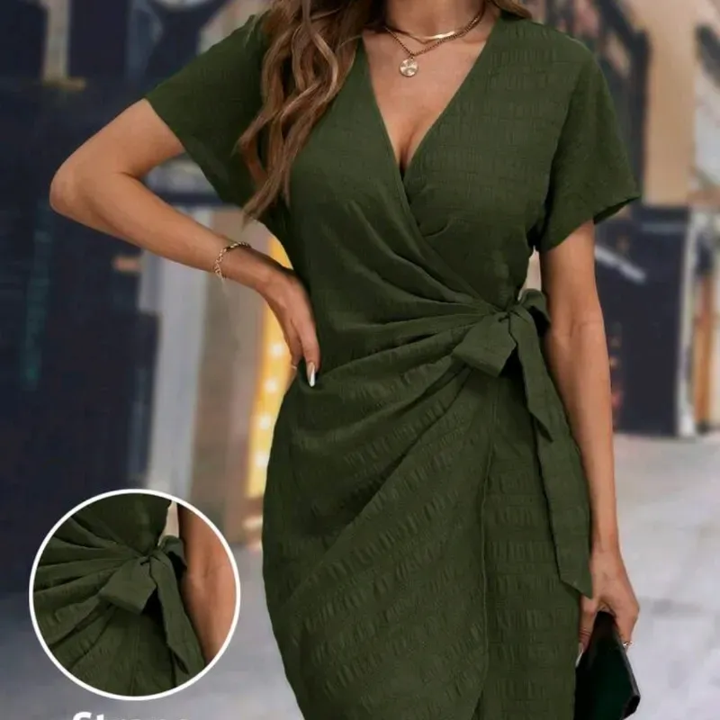 💚 Vestido corto con nudo frontal — Verde Militar