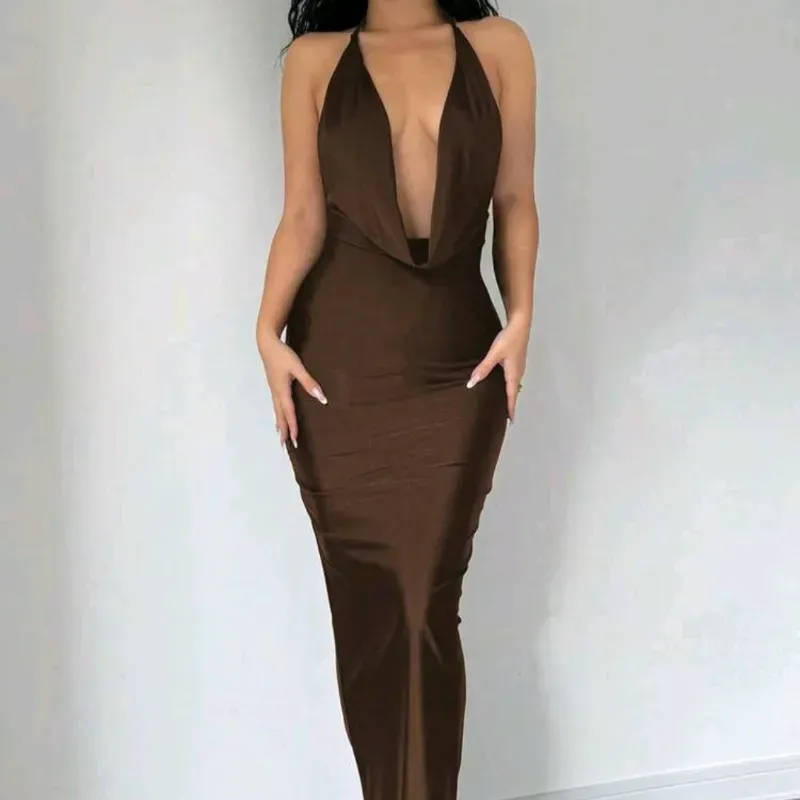 🤎 Vestido largo halter drapeado — Carmelita
