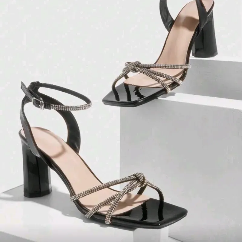 🖤 Zapatos de tacón con pedrería — Negro