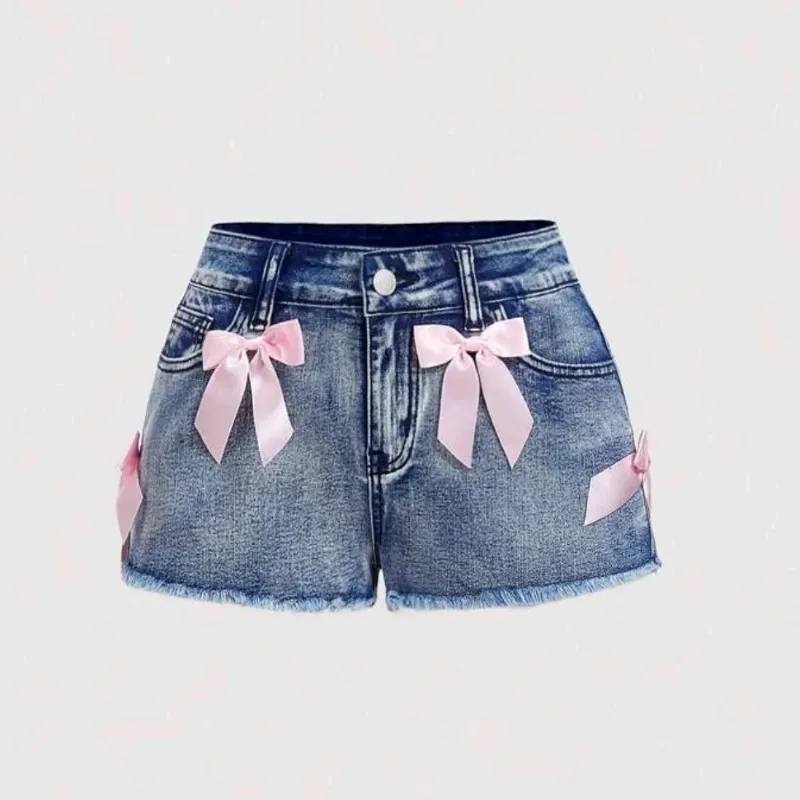 💙🩷 Shorts de mezclilla con lasos — Azul Oscuro