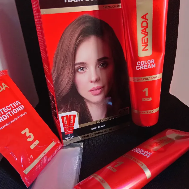 Contiene 2 tubos de tinte, guantes acondicionador y peroxido para ambos tubos