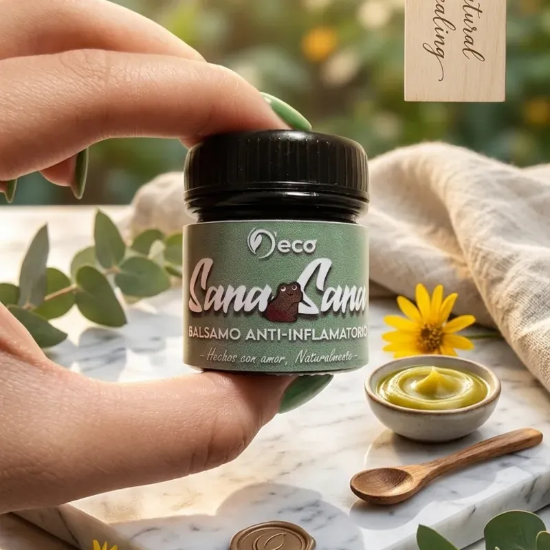 Conoce el alivio natural que estabas esperando. Nuestro bálsamo Sana Sana de D'eco está formulado específicamente para combatir la inflamación y calmar el dolor, penetrando profundamente donde más lo necesitas. 🐸💚