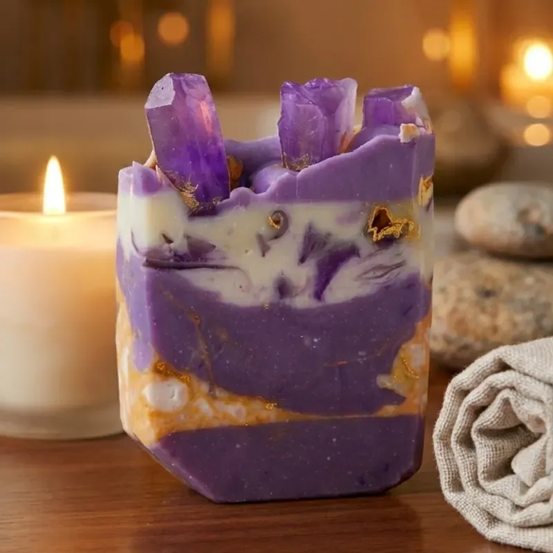 ¿Quién dijo que la magia no existe? Transforma tu rutina diaria en un ritual de lujo con nuestro nuevo jabón artesanal inspirado en las geodas de amatista. Este no es solo un jabón, es una joya aromática. Su fragancia es un jardín secreto: la calma de la lavanda, la elegancia de las violetas y la dulzura envolvente de la gardenia. 💧 En tu piel: Sentirás una caricia ultra cremosa gracias a nuestra fórmula especial con manteca de cacao, karité y sebo, diseñada para limpiar sin resecar, dejando tu piel suave y nutrida. Date el capricho que mereces o regala magia. ✨