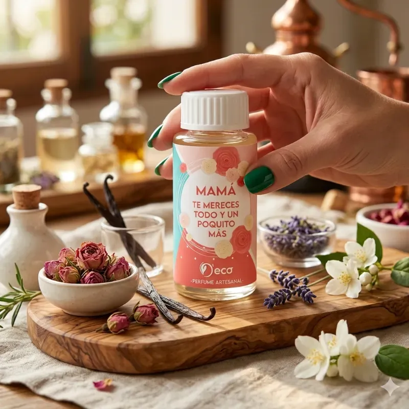 Perfume diseñado especialmente para el dia de las madres. Con toques florales, frescos y dulces. Nos envuelve en un abrazo de amor y calidez. Etiqueta con mensaje para mamá.