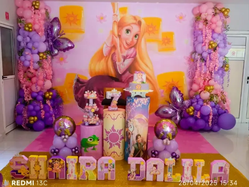 * Elementos decorativos ( luces, flores, número luminico, figuras de cartulina)