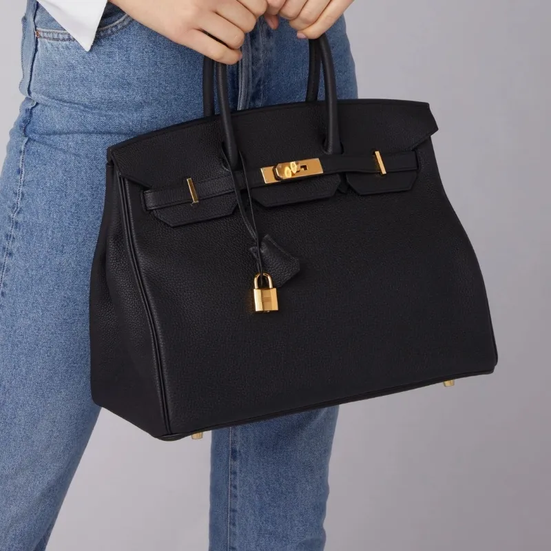 Negro (herraje plateado y herraje dorado) Calidad premium Piel natural Herrajes plateados Grande