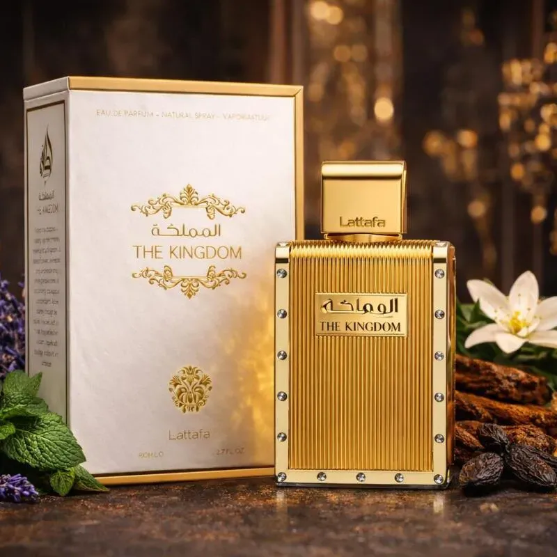 The Kingdom For Men de Lattafa Perfumes es una fragancia de la familia olfativa Aromática para Hombres. Esta fragrancia es nueva. The Kingdom For Men se lanzó en 2024. Las Notas de Salida son lavanda, menta y salvia; las Notas de Corazón son vainilla, tabaco y flor de azahar del naranjo; las Notas de Fondo son haba tonka, benjuí y ládano.