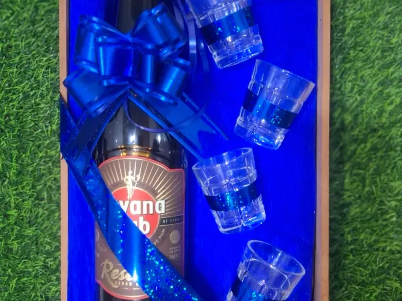 La máxima expresión de un regalo con estilo. Una botella de licor de lujo, dos vasos de cristal tallado y una selección de bombones finos, presentados en una exquisita decoración. Es la declaración perfecta para celebrar los momentos que merecen sólo lo extraordinario.