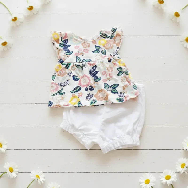 Conjunto de blusa de flores y short blanco