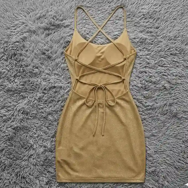 Vestido de ajuste ceñido c/ espalda descubierta y cordones