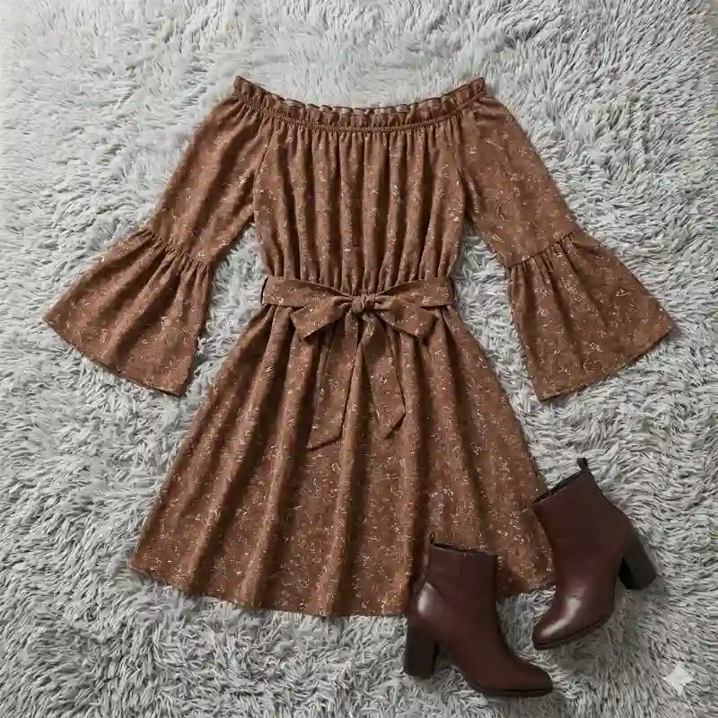 Vestido de mangas largas marr贸n floreado