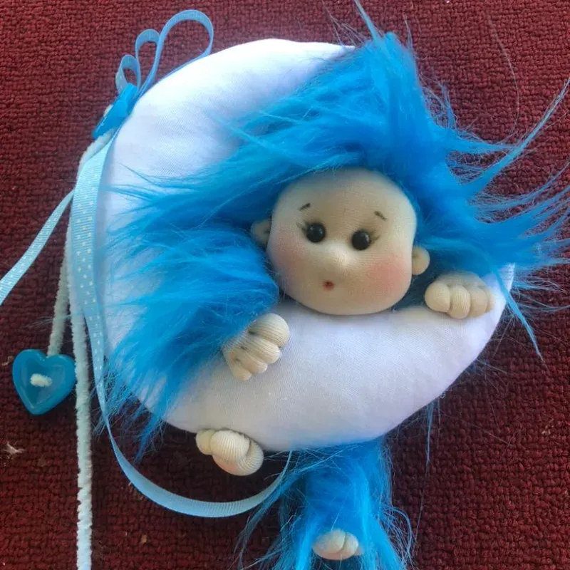 Duende colgado en la luna hecho a mano con materia prima importada técnica soft..ideal para regalar o decorar el cuarto d su recién nacido