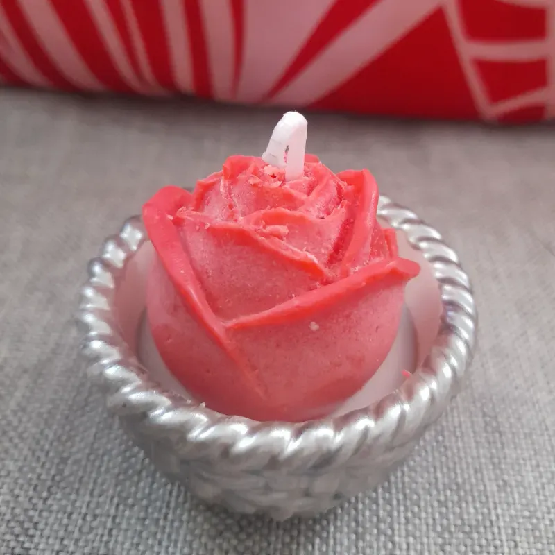Rosa de cera de soja con fragancia en recipiente de yeso forma cestico