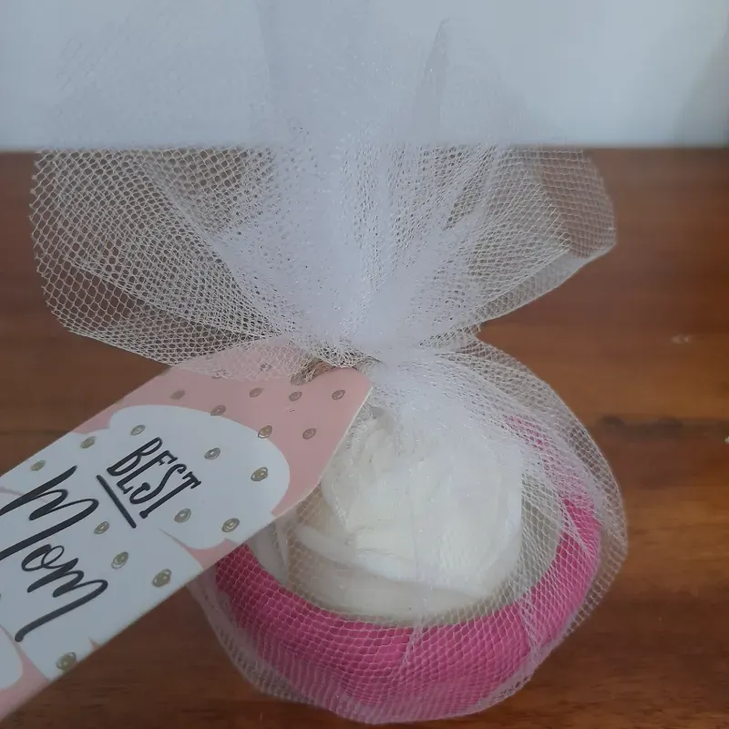 Rosa blanca en cesto fuscia cera de soja 100% natural con aroma vainilla terminación en tul con tarjeta p mamá