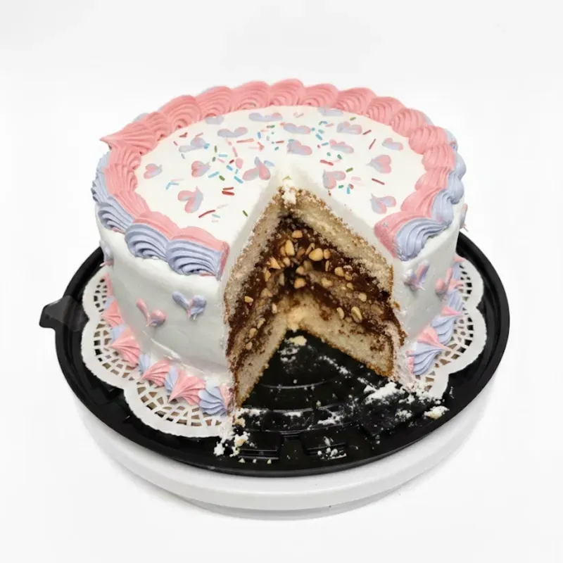 Diámetro: 20cm, Altura: 10 cm Aproximadamente, Decoración: Nata, Relleno Doble: Nata Achocolatada con Maní