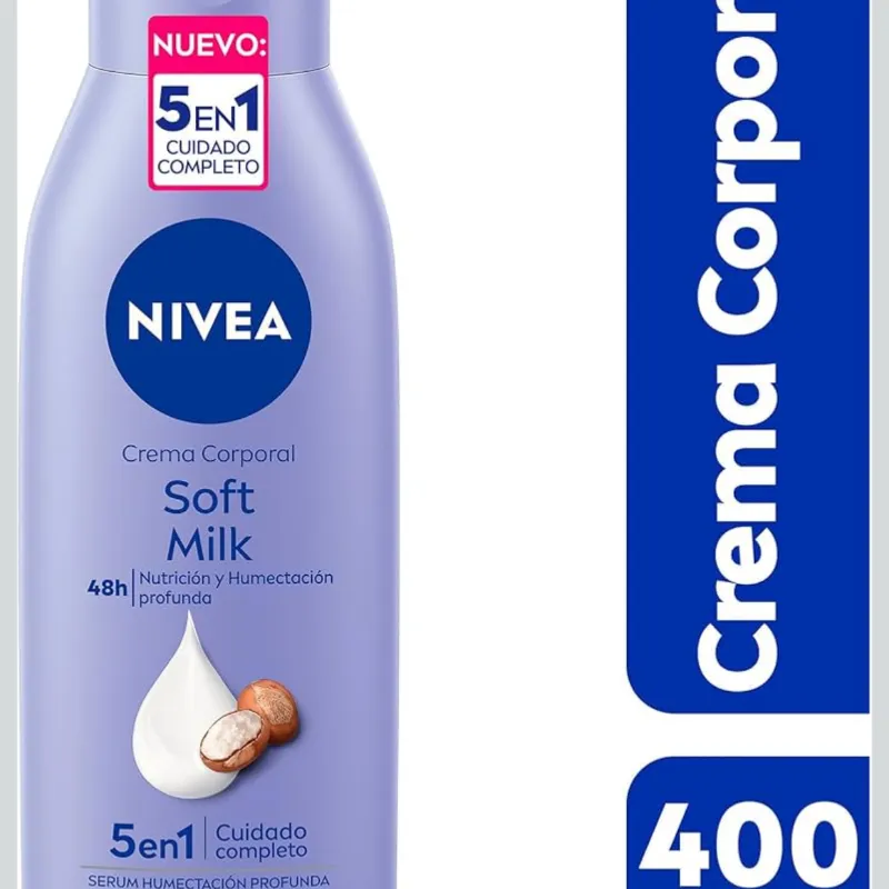 NIVEA Crema Corporal humectante Soft Milk (400 ml), 48 horas de Humectación y Suavidad Profunda con manteca de Karité ideal para Piel Seca