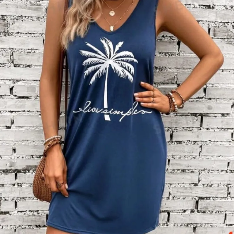 Vestido azul con dibujo de palma talla M