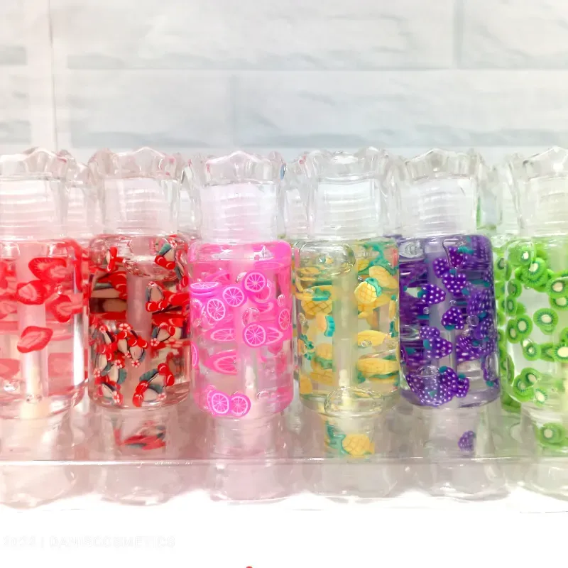 Un brillo labial frutal suele contener ingredientes naturales o aromatizantes artificiales que le dan un agradable aroma y sabor a fruta.🍒🍓🥝🍍🍇🍋🍊
