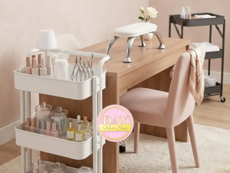 Carritos de peluqueria, organizadores metálicos, bolsos de manicura y maquillaje, sillones, banquetas, reposamanos y cortinas.