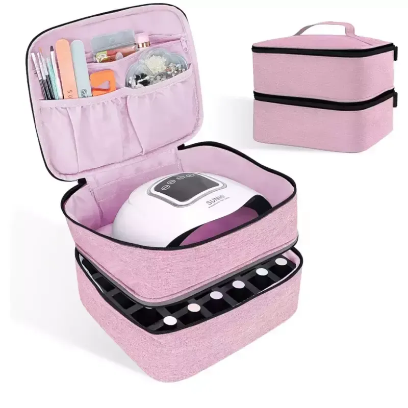 Con capacidad para almacenar una lámpara, + de 30 esmaltes de gel y herramientas. Ideal para realizar servicios a domicilio