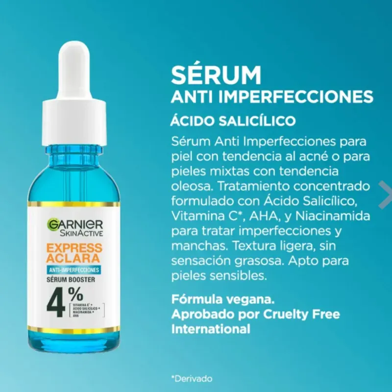 SÉRUM GARNIER ANTI IMPERFECCIONES ÁCIDO SALICÍLICO LICO30ML