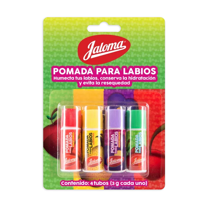 Estuche de 4 unidades Ayuda prevenir y a proteger temporalmente los labios partidos, irritados, agrietados o resecos.. Las veces al día que prefieras sobre tus labios, para mantenerlos humectados.. Humecta y previene la requesedad de los labios con un sabor agradables a: cereza, manzana, violeta y piña. .