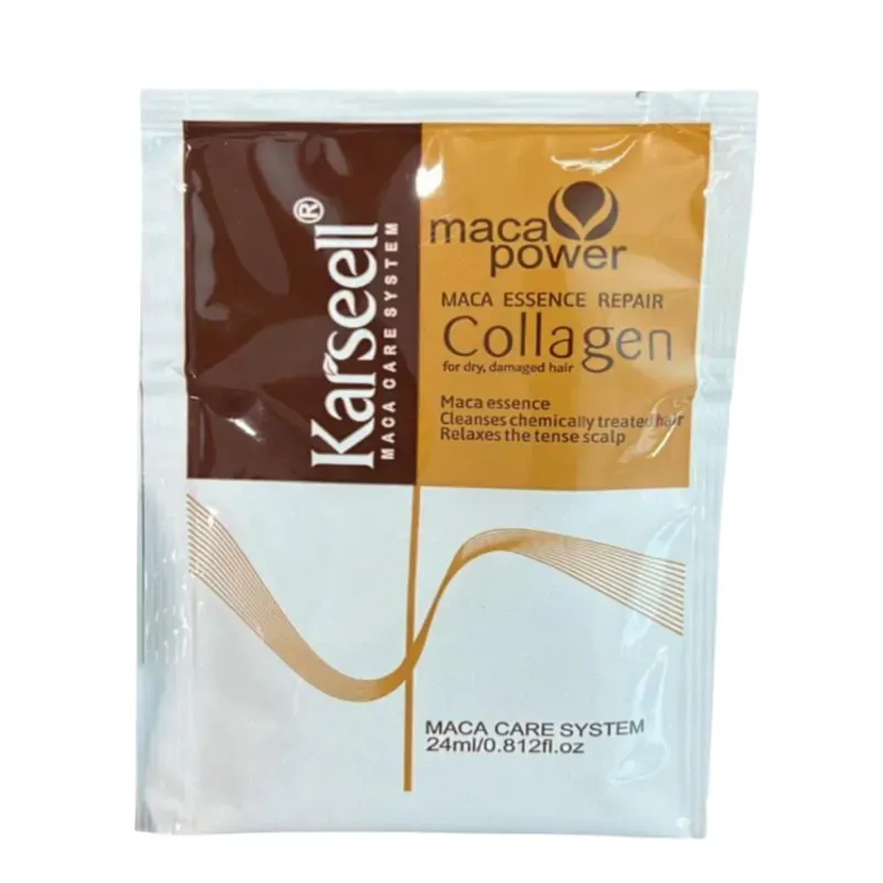 La mascarilla Karseell es un tratamiento capilar que contiene colágeno, aceite de argán, maca y hierbas naturales. Se utiliza para reparar el cabello dañado, seco o procesado químicamente, y dejarlo más suave, brillante e hidratado.