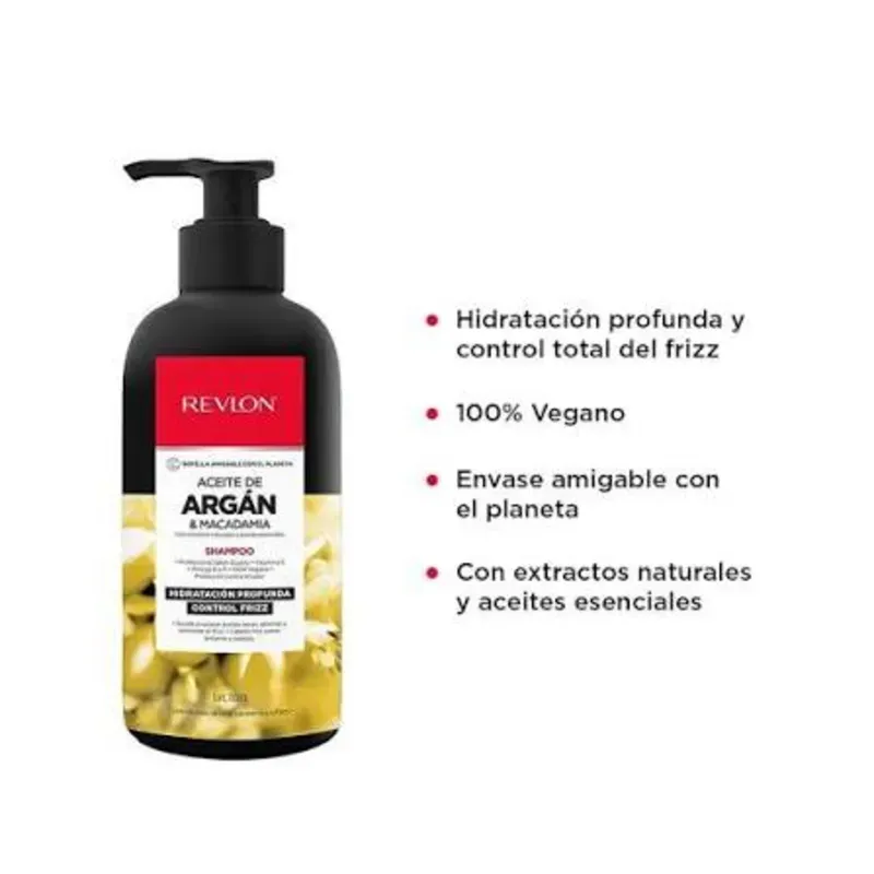 El Shampoo Revlon Argán y Macadamia 700ml está diseñado para ofrecer una limpieza profunda mientras nutre tu cabello con aceites naturales. Su fórmula avanzada ayuda a contrarrestar y combatir el frizz causado por la contaminación y la resequedad, proporcionando una hidratación duradera.