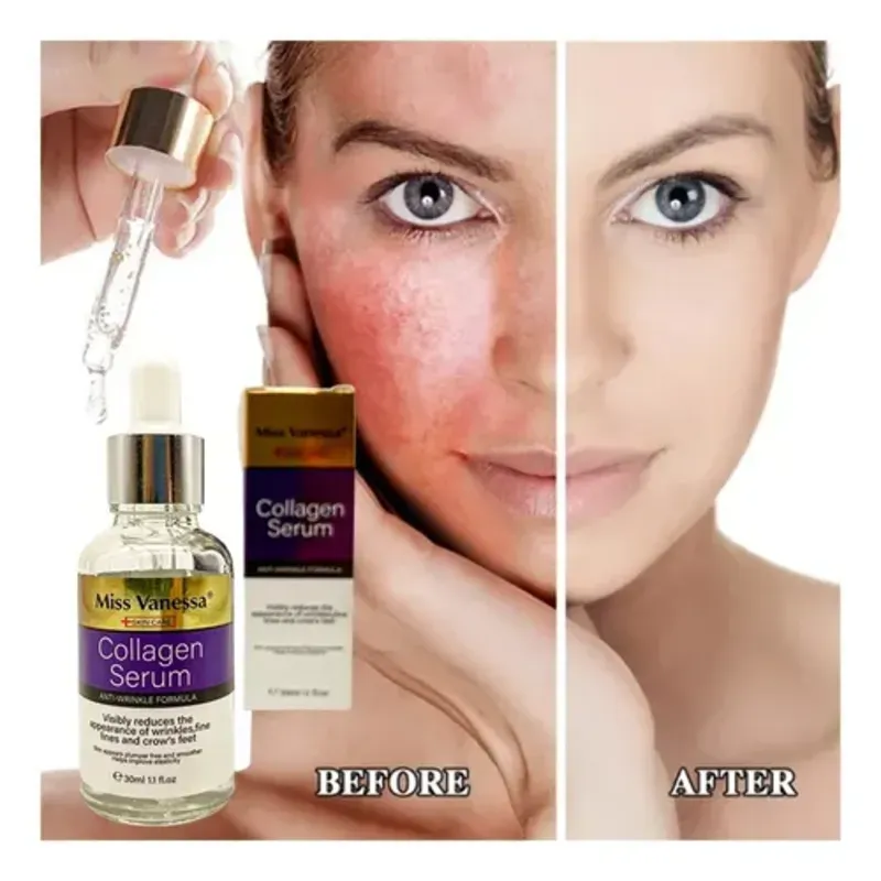 Sérum facial 30ml Miss Vanessa Collagen es un suero facial extremadamente eficaz diseñado para rejuvenecer e hidratar la piel. Su fórmula es rica en colágeno, que ayuda a mantener la firmeza y elasticidad de la piel, y reduce visiblemente las arrugas, líneas finas y patas de gallo.