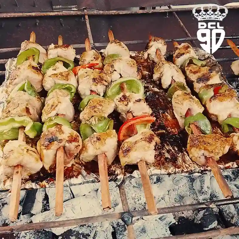 Una brocheta aliñada con 500 gramos de carne trozos de ají pimiento y piña