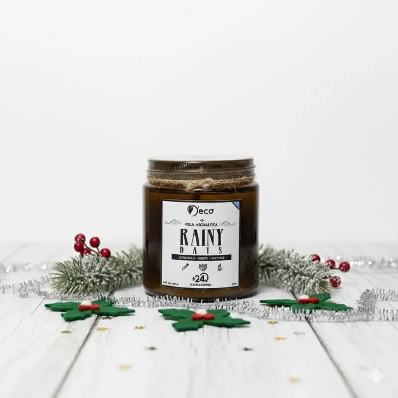 Nuestra vela aromática Rainy days viene en un formato de 120g, con un tiempo de quema aproximado de 24 horas. Una mezcla de fragancias refrescantes y deliciosas, menta, citronela y pachouli. Una fragancia herbal y cítrica, justo como una tarde lluviosa de primavera.