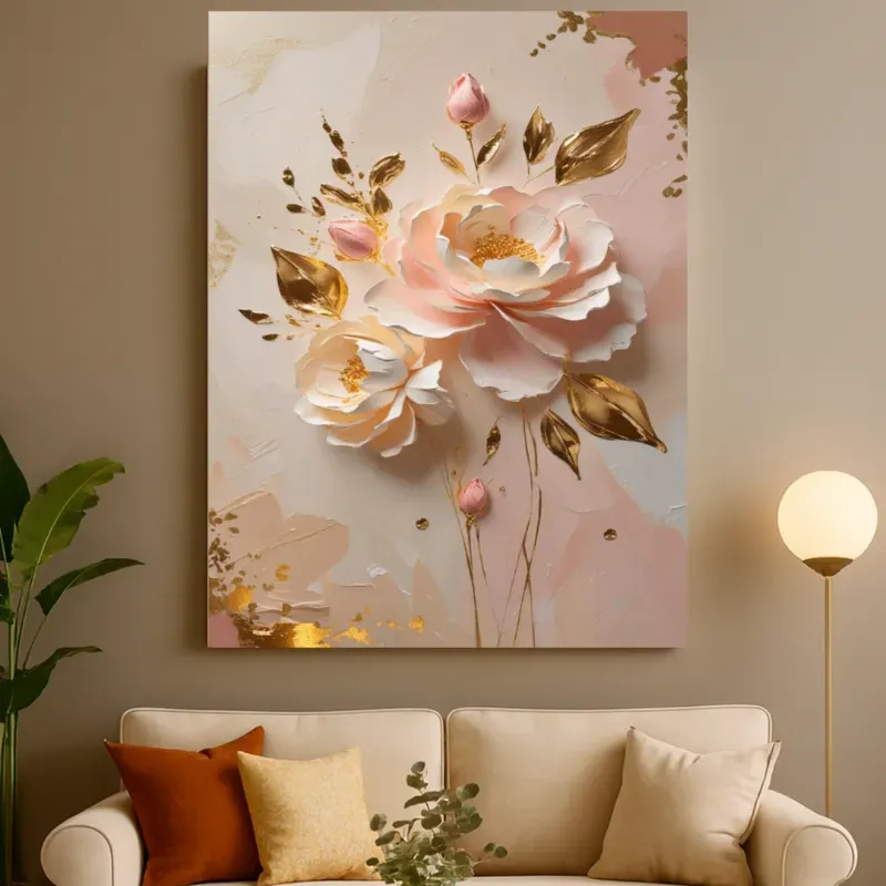 Medida de medio metro por un metro Lienzo impreso original montado en bastidor de madera.