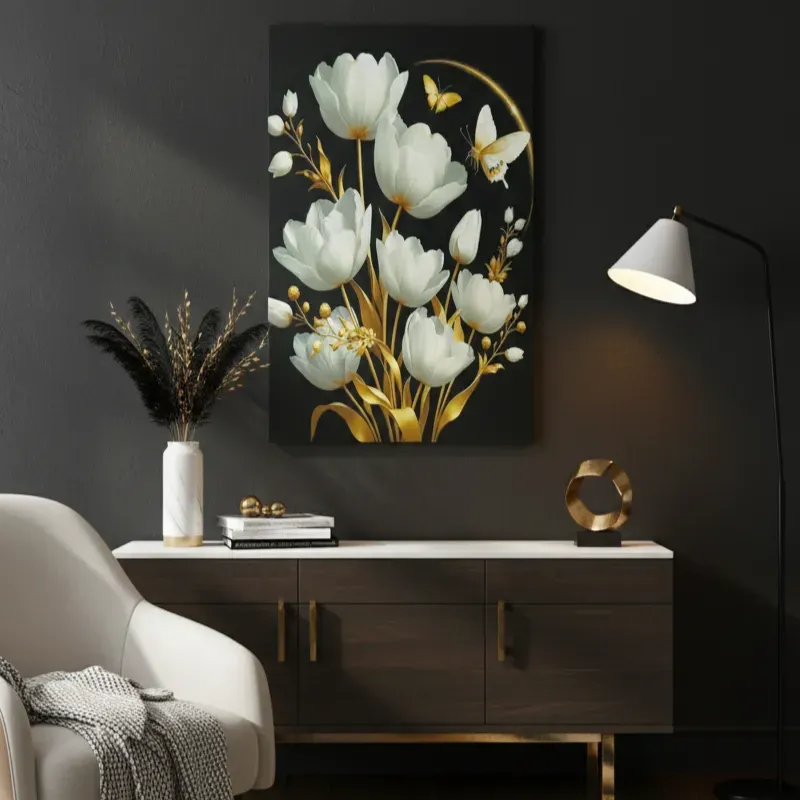Medida de medio metro por un metro Lienzo impreso original montado en bastidor de madera.