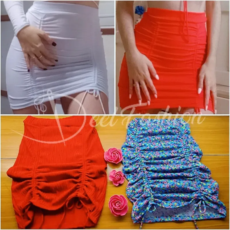 Falda corta con fruncido doble con tiras. Si desea hacerle alguna modificación especifíquelo antes de completar el pedido.