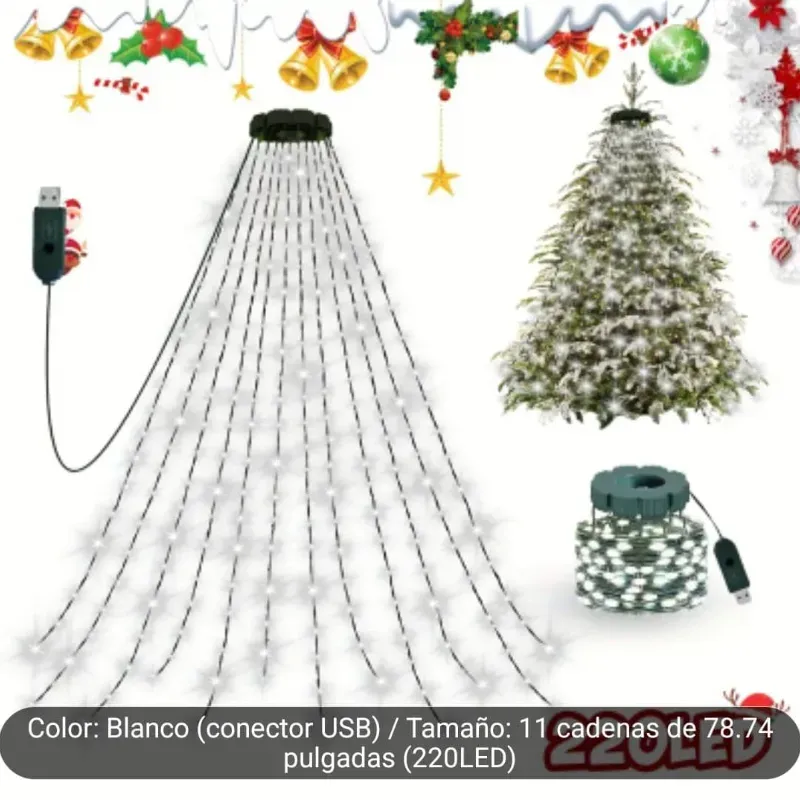 Cadena de luces LED navideñas 400/220, 20/11 cadenas de 78.74 pulgadas, luz de cascada para árbol, alimentación por USB, cadena de luces de hadas de alta luminosidad, 8 modos, ideal para jardín, terraza, hogar y decoración de árbol de Navidad, Decoración Estacional,LED Duradero,Decoradores del Hogar