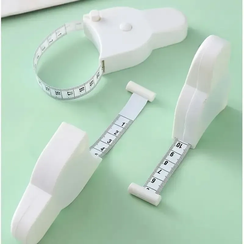Cinta métrica corporal de 60 pulgadas (150 cm), con pasador de bloqueo y botón de retracción; cinta métrica de tela suave para pérdida de peso, color blanco