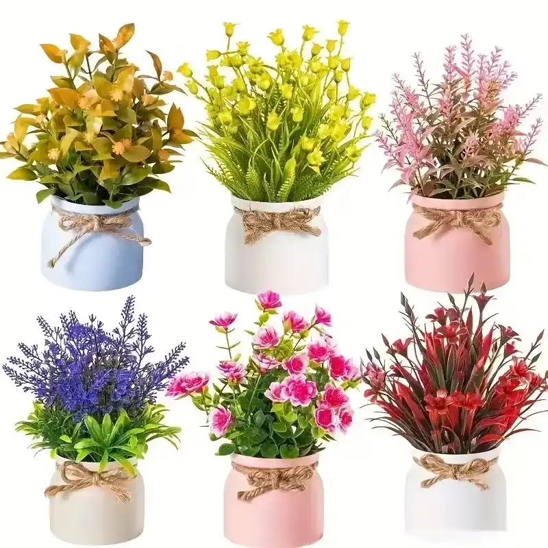 Plantas Artificiales Verde Lavanda Pequeñas Plantas en Macetas para Escritorio Ventana Cocina Baño Decoración Centro de Mesa de Boda Suministros 💲12 usd /unidad