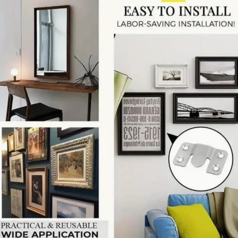 Ganchos Interconectables de Acero Inoxidable Fuertes y Duraderos - Soportes de Montaje en Pared Resistentes al Óxido de Fácil Instalación para Marcos de Fotos y Muebles 💲3.00 usd