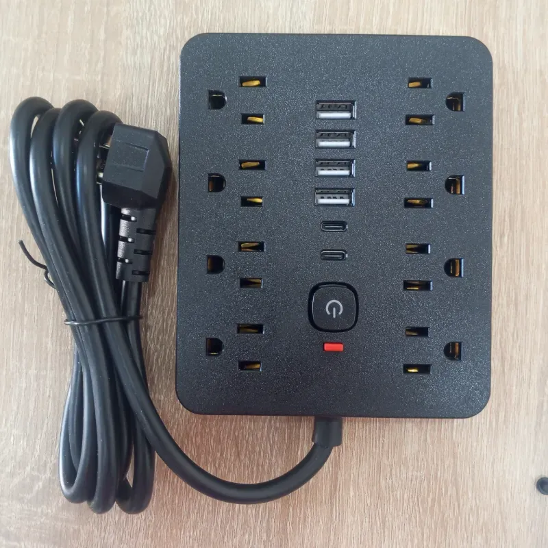 pieza de toma de corriente multiusos con protección contra sobretensiones y interruptor - 8 tomas de corriente AC con 4 puertos USB-A y 2 puertos USB-C, cable de extensión de 5 pies/10 pies - Para uso en oficina, estudio, hogar y escuela - Enchufe de corriente con protección contra sobrecarga