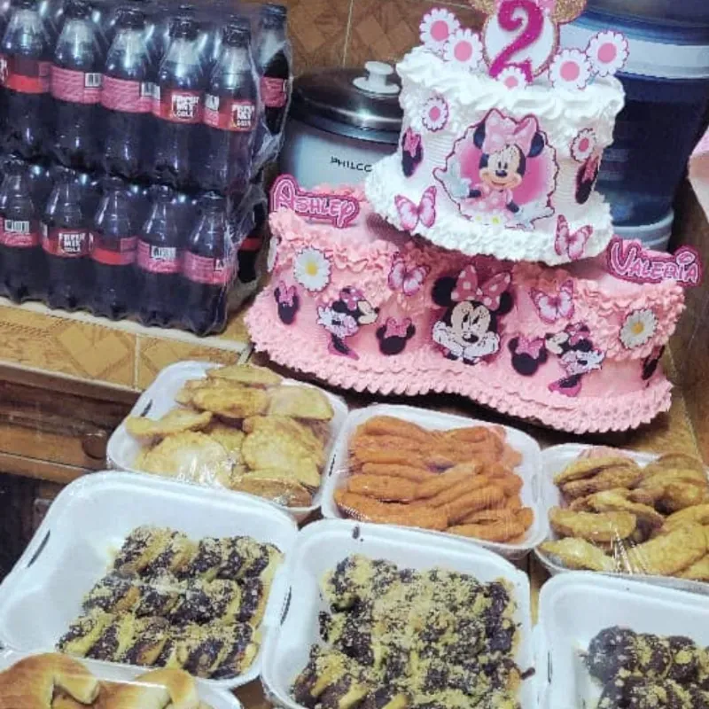 Incluye: 50 mini donas 50 empanadillas 50 croquetas 50 pastelitos 50 cangrejitos Emplatado 10 lbs de ensalada fria con jamonada y queso blanco 2 cajas de refresco de 24 u