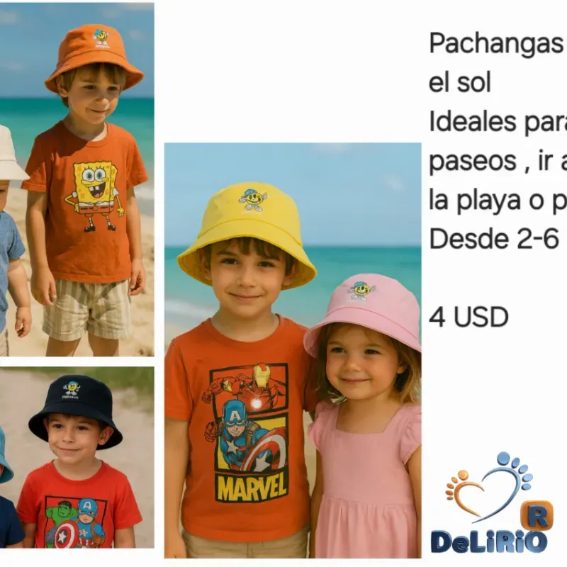 🏖️ Ideales para: Playa, piscina o paseos. 👶 Edad: 2 a 6 años. 🎨 Colores: ¡Varios tonos disponibles para combinar! 💰 Precio: 4 USD