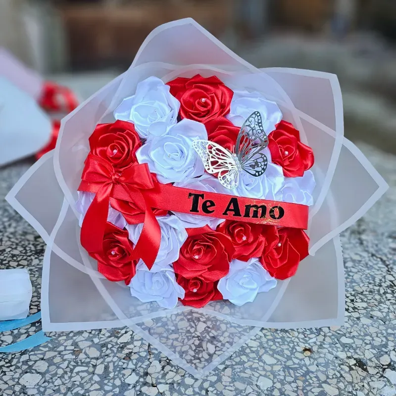 Ramo de 20 Rosas Eternas Rojo y blanco