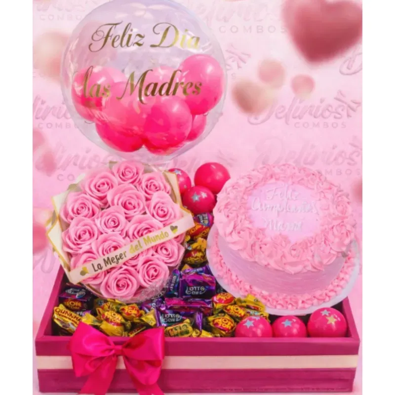 Regalo con Pastel + Ramo + confituras