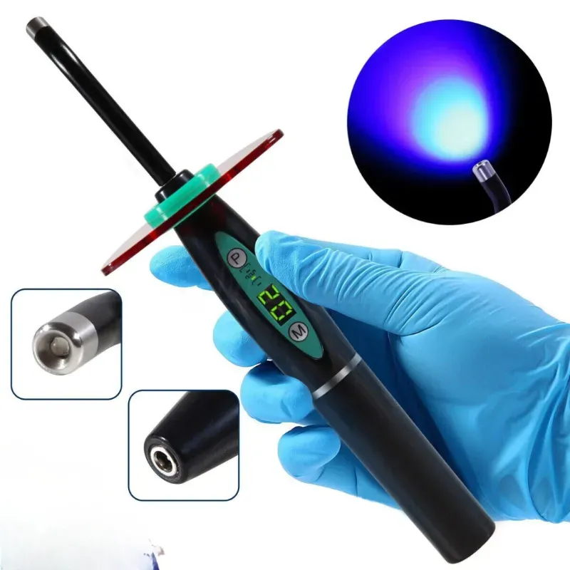 Lámpara de curado dental con tecnología LED, diseñada para endurecer y polimerizar materiales de resina durante procedimientos odontológicos. Ideal para el uso clínico diario.