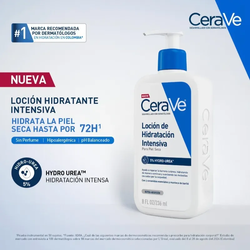 CeraVe Loción Hidratante Intensiva es una solución esencial para la piel seca, que combina una hidratación avanzada con la restauración de la barrera cutánea. Esta loción dermatológicamente desarrollada aborda múltiples signos de sequedad, asegurando que su piel se sienta reconfortada y nutrida. Características principales 👇🏻 ✓ Desarrollada con dermatólogos para aliviar el picor, la tirantez, la aspereza, la descamación y el enrojecimiento debidos a la sequedad. ✓ Hidrata la piel en profundidad sin dejar residuos grasos ni pegajosos. ✓ Está formulada con tres ceramidas esenciales, ácido hialurónico y 5% de Hydro-Urea™ para una óptima retención de la hidratación. ✓ La tecnología MVE Delivery Technology proporciona 72 horas de hidratación a través de la liberación gradual de ingredientes hidratantes. ✓ Aumenta la hidratación de la piel en un 100% de forma inmediata y la multiplica por 2 con su uso continuado dos veces al día. ✓ Aumenta la función de barrera hidratante de la piel en un 42% con el uso continuado. ✓ Probado contra alergias, sin perfume y apto para todo tipo de pieles, incluidas las sensibles. 💲 Precio: 25 usd o al cambio en MN 🛵 Mensajería disponible 📞 Contactar por WhatsApp al 5 4744999