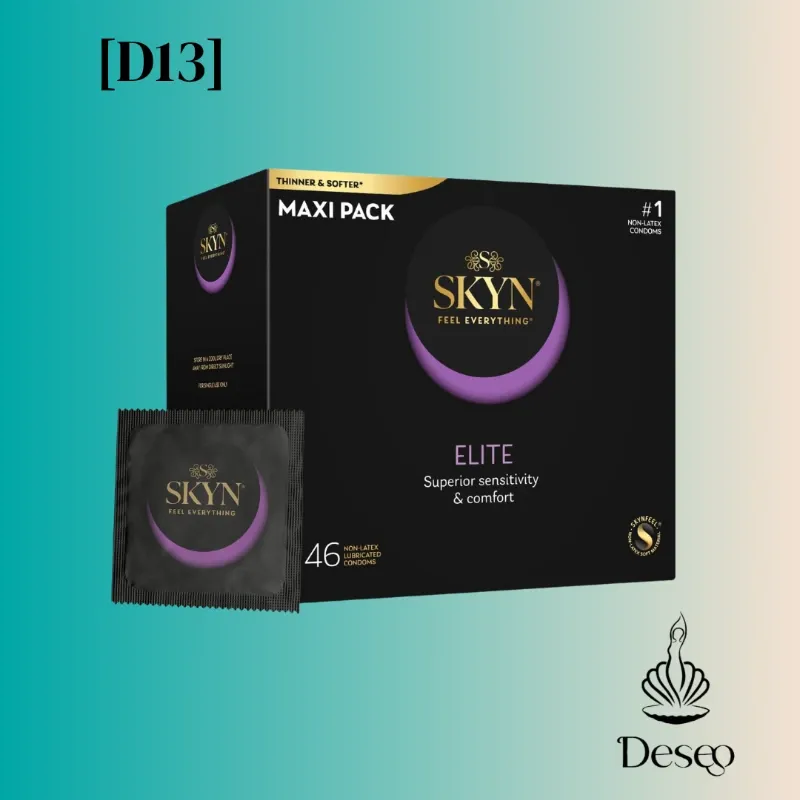 🎯 ¡Máxima Sensibilidad y Seguridad! 🎯 🛡️ SKYN Elite – 46 Condones Ultra Finos, Lubricados y Sin Látex ✨ Características Destacadas: ✅ Talla estándar 53 mm – Se adapta cómodamente a la mayoría. ✅ Ultra Finos: Sensación piel con piel. ✅ Lubricados: Más confort, menos fricción. ✅ 100% Sin Látex: Perfectos para personas con alergia o sensibilidad. ✅ Paquete de 46 unidades