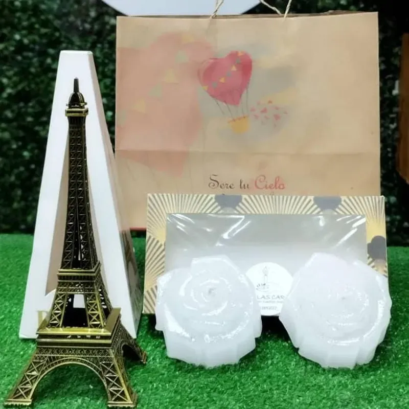 1 Estuche de 2 velas decorativas de flor (Flores blancas)