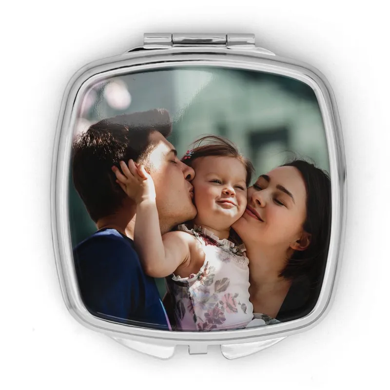 Un espejo compacto y resistente que puedes llevar a todos lados. Disponible en formas cuadrada, semi cuadrada, corazón y ovalada, personalizable con nombres, fechas o frases especiales. El regalo perfecto para esa chica , a quien quieras sorprender con un detalle útil y lleno de cariño. Características • Metal resistente y duradero • Espejo de alta calidad, compacto y portátil • Formas: cuadrada, semi cuadrada, corazón y ovalada • Personalizable con nombres, fechas o mensajes • Ideal para llevar en el bolso o mochila, siempre a mano