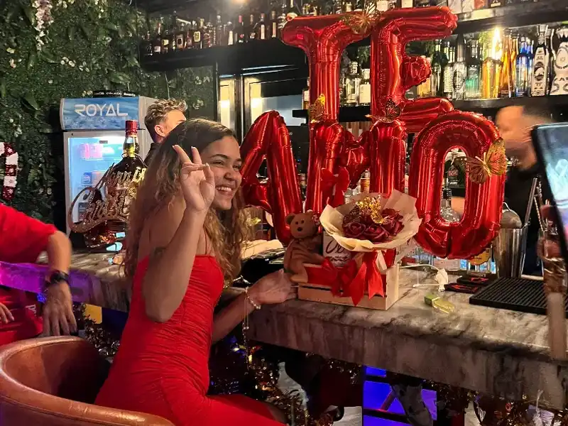 Arreglo con decoracion perzonalizada Globos de corazones Ramo de globo burbuja con rosa encapsulada Luces Taza perzonalizada Perfume